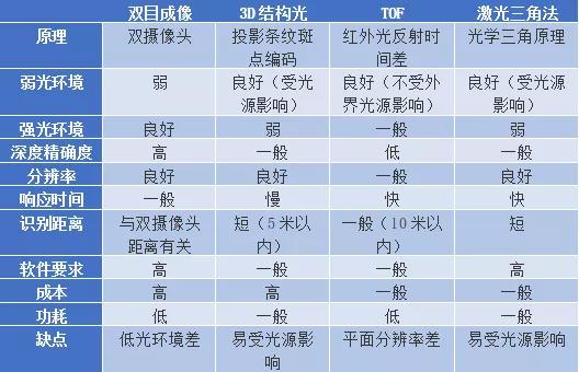 對于這四種3D視覺原理各自的優(yōu)缺點